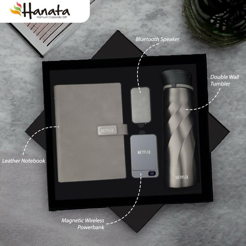 Aquarius Notebook Grey | Powerwave 5000 | Nano V Bluetooth Speaker | Athletica Tumbler Grey | Romy Thick Box Custom Spons