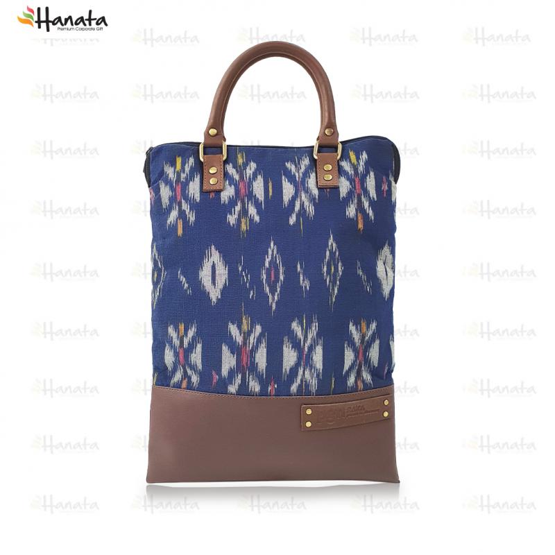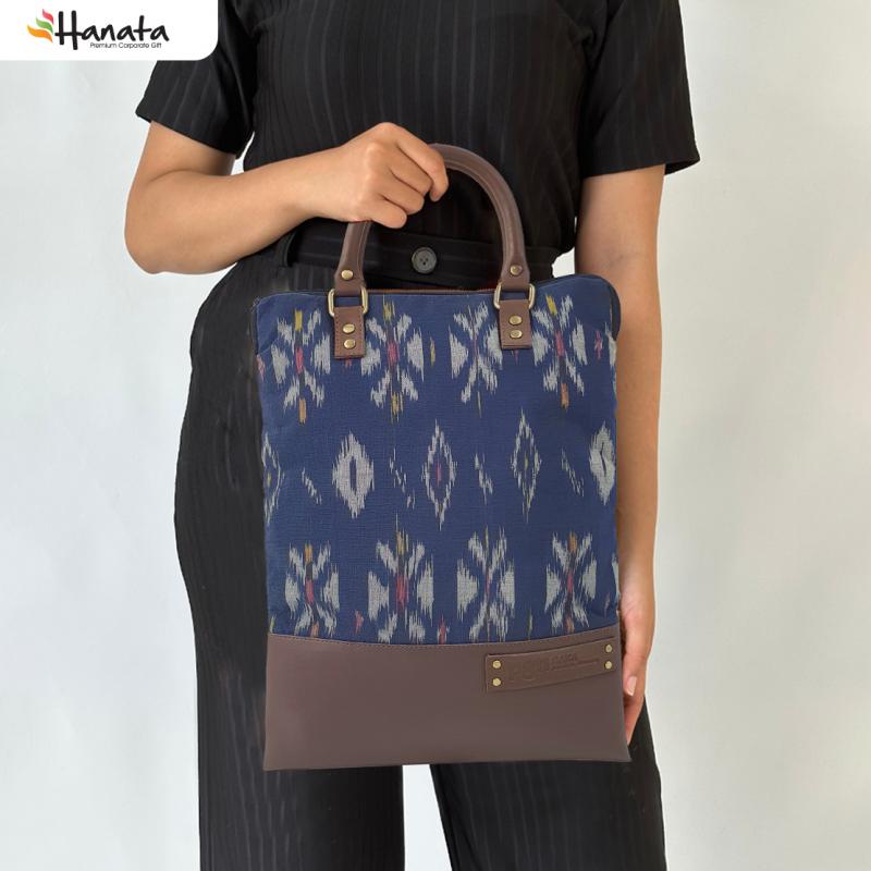 Tenun kroto /batik and Pu combination totebag Handle : Tali Kulit Size : 28X39 CM Logo : Emboss on PU
