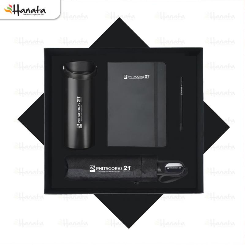 Lukas Metal Umbrella | Larry Tumbler | Olivia Lined Black | Delta Pen Black | Romy Thick Box Custom Spons available