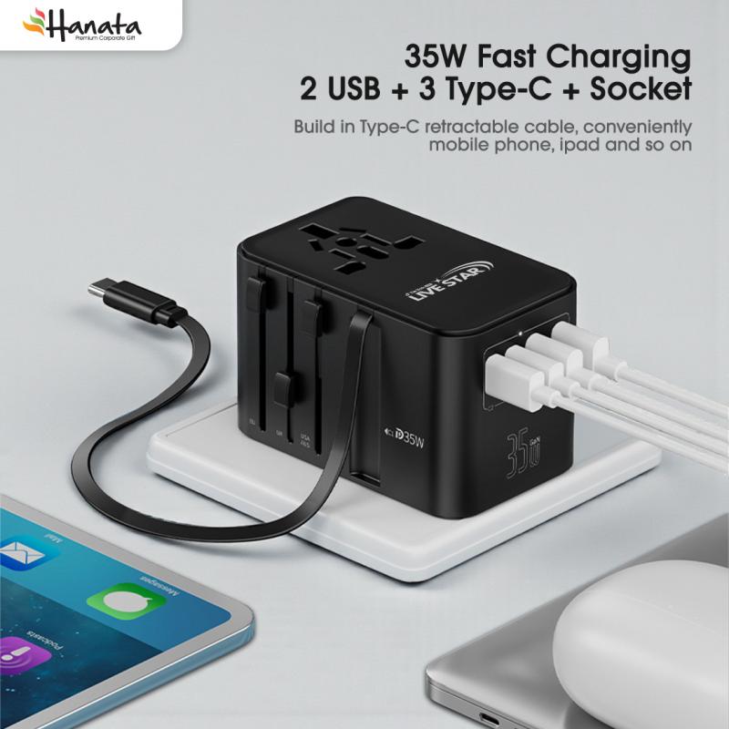 The Atlas 35W GaN Universal Travel Adapter is designed for professionals on the move — combining power, safety, and versatility in one sleek device. Featuring a built-in retractable cable and GaN technology, it delivers fast, efficient charging across 200+ countries.