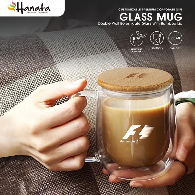 350 ml Double-walled borosilicate Glass Cup with bamboo lid