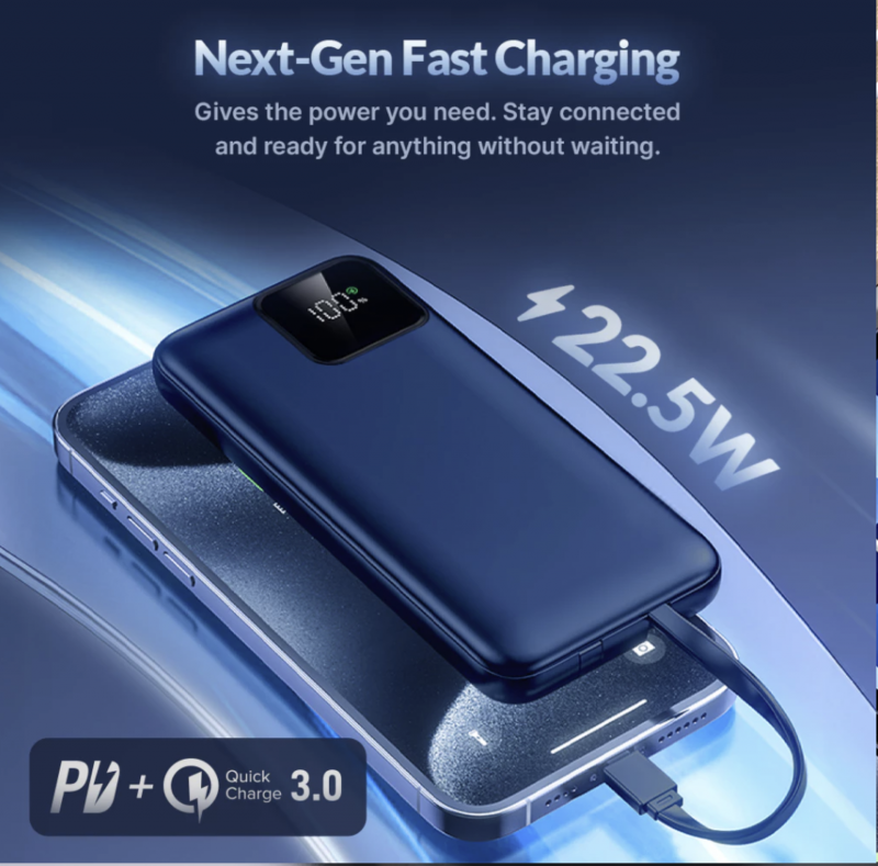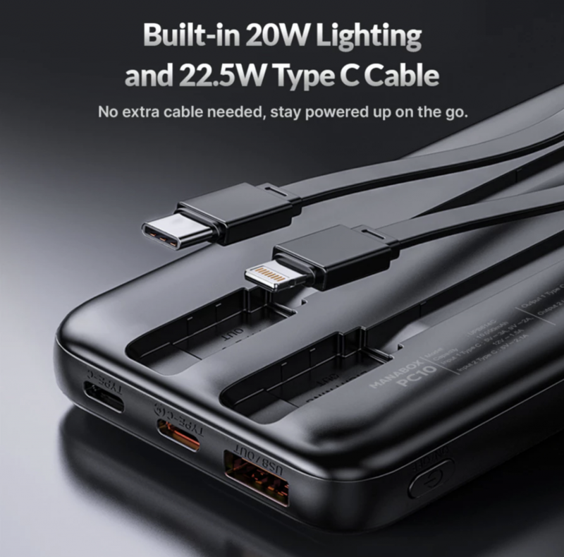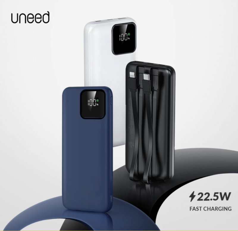 UNEED Powerbank 10000mAh PD QC 22.5W with Built in Cable