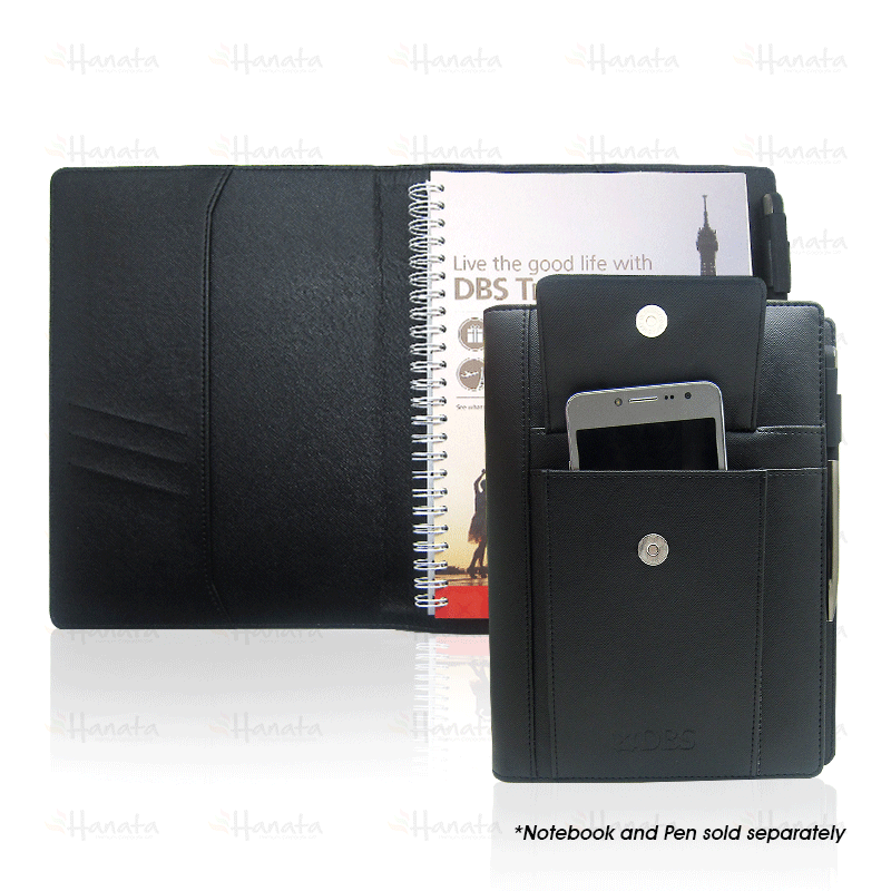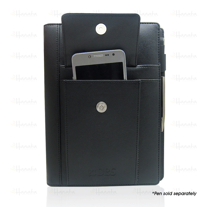 Leather Cover notebook with front clip pocket, to fit your phone or your other daily accessories Size : 23,5 X 17,5cm