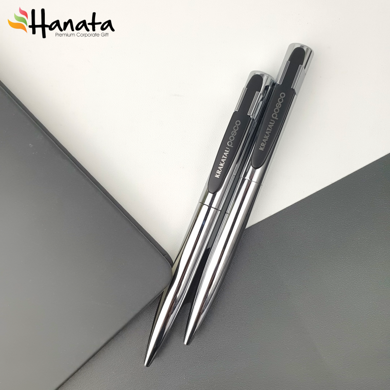 Designed for executives and professionals, this pen features a sleek metallic finish, a bold black clip with precision laser engraving, and a smooth writing experience.