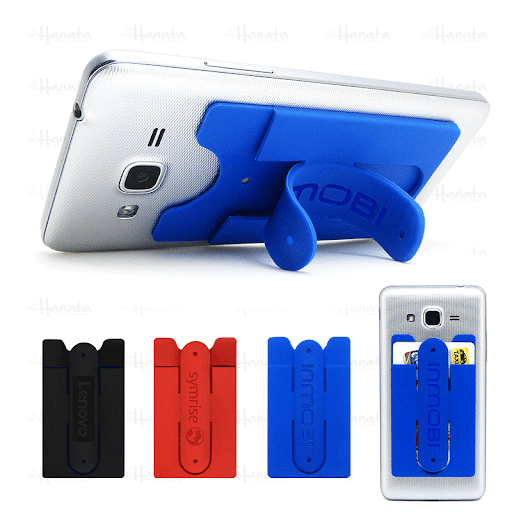 Sleek Silicon cord holder with phone stand in rubber material. Adhosive bocking sticks securely to the bock of your cell phone. Prop up your decive for hands free viewing or toking. Block color available in stock.